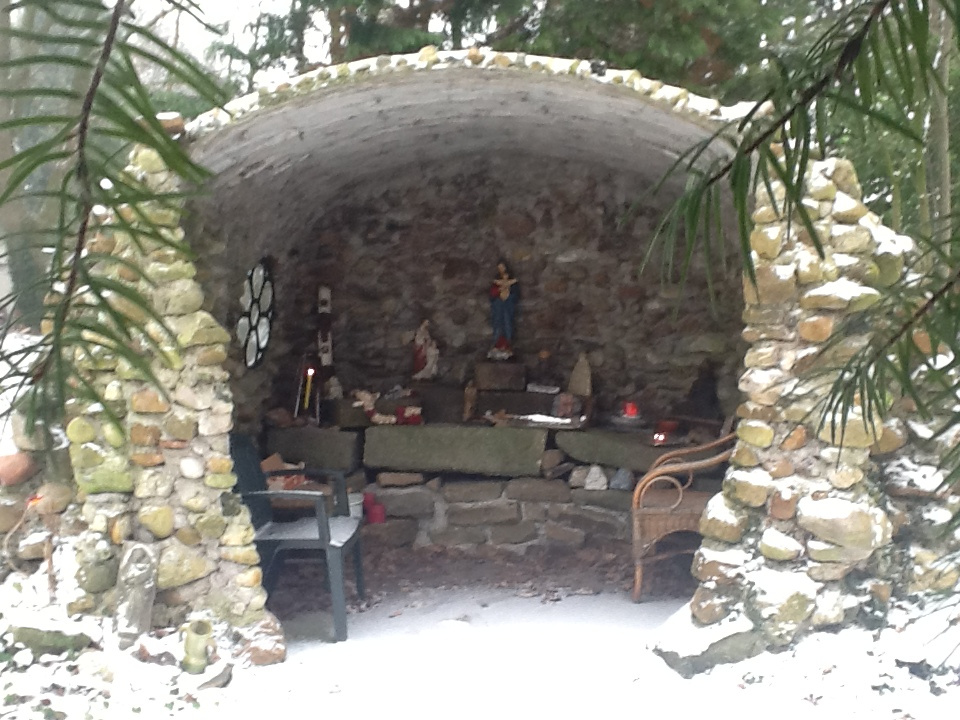 Landelijk gelegen in een geriefbosje bevindt zich ons stilte-plekje. Het Grotje, een ( invaliden)toilet en het keukentje en een Boekenbosje.